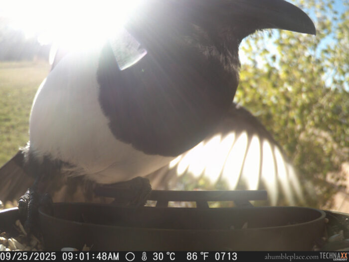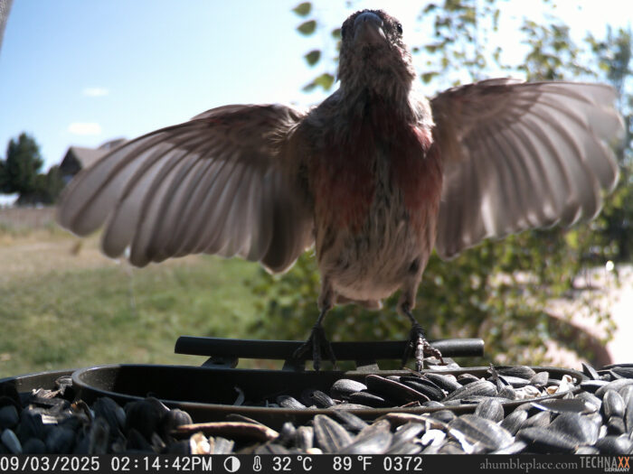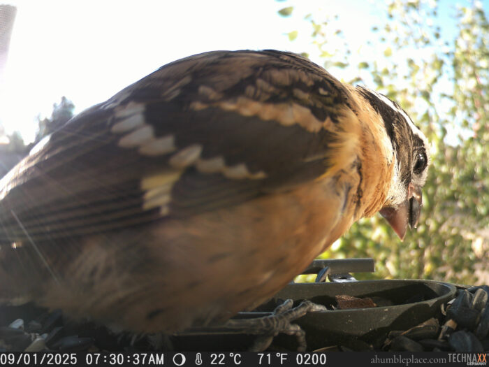 it’s a very, very basic model (Technaxx TX-165) that we picked up a while ago. no wifi and doesn’t automatically ID birds like some of the fancier ones do, but we’re okay with those things. the only thing I wish it did have was a solar panel. but it’s been fun to collect birds! 🙂